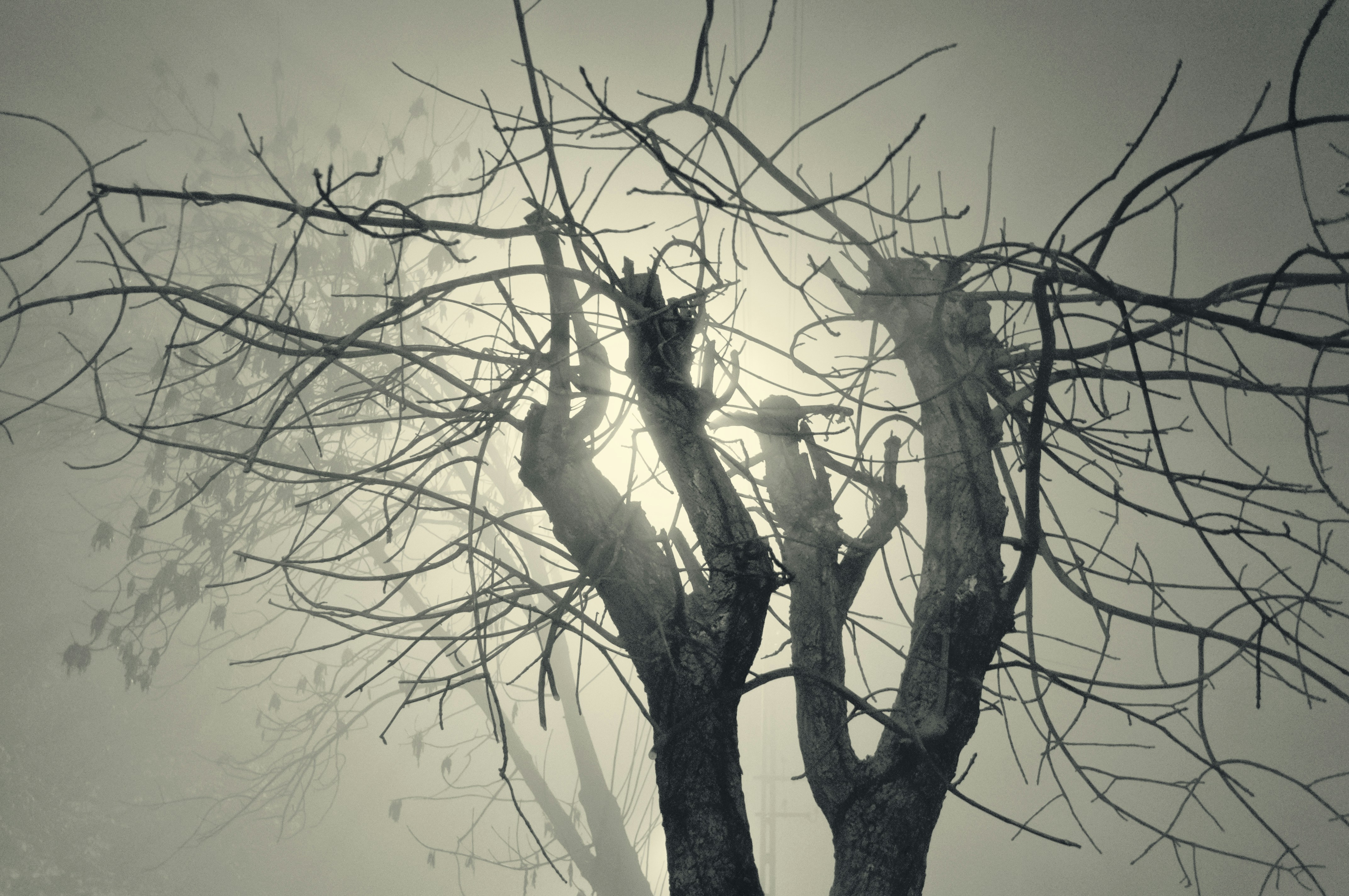 Осень: туман и голые деревья в кадре