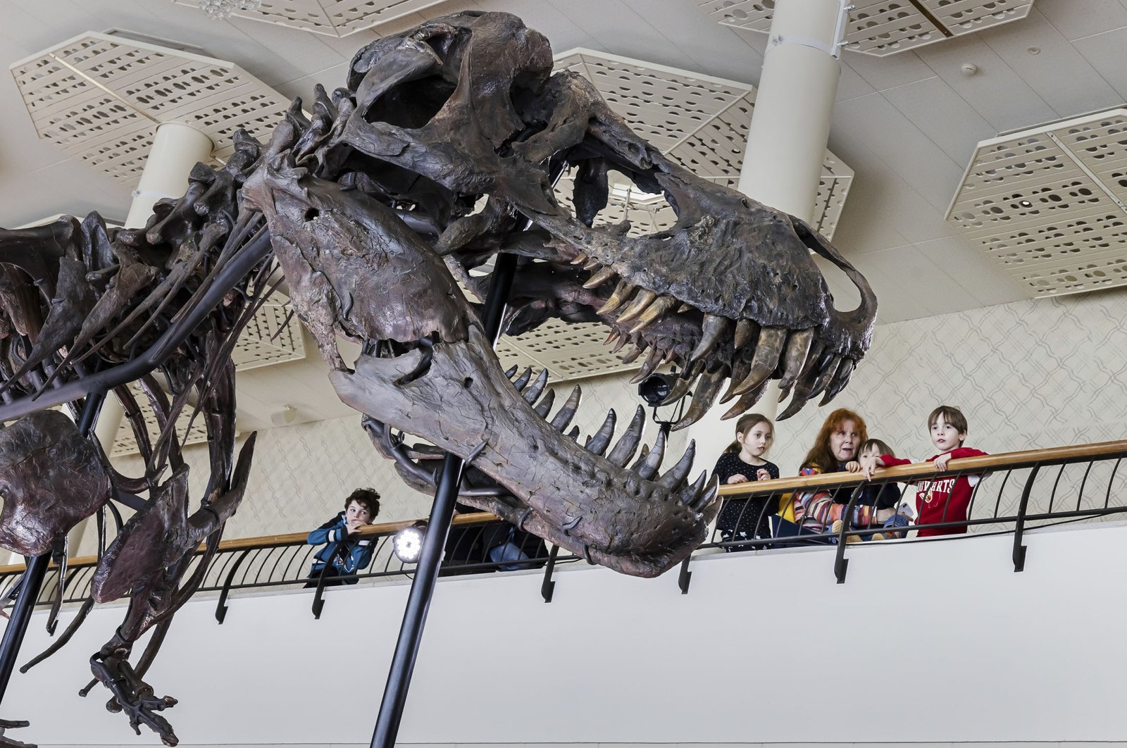 Фотографии скелета тираннозавра в музее ночью