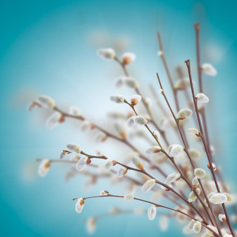 Весенние пейзажи: верба и ясное небо