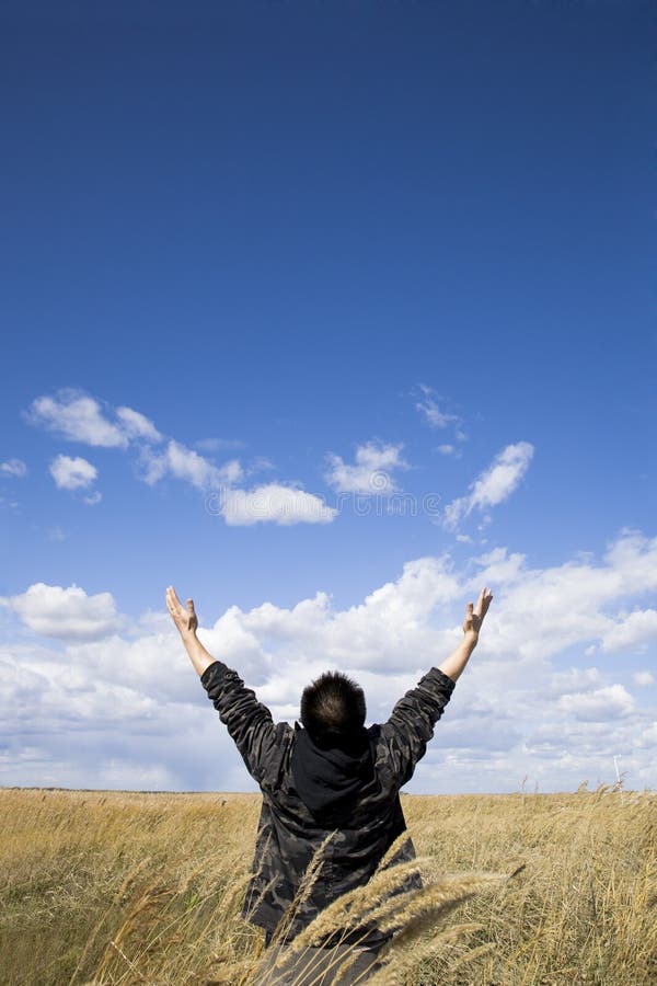 Эмоции природы: руки, поднятые к небу в поле