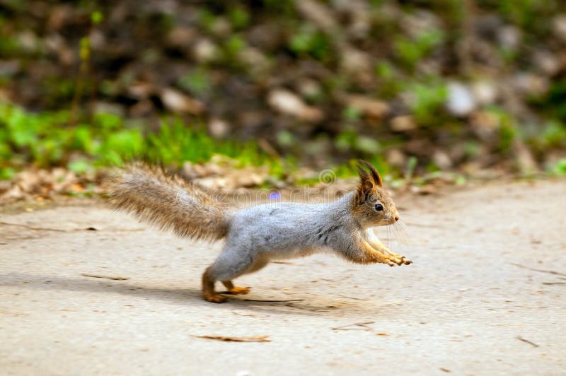 Природа в фотографии: Убегающая белочка в лесу