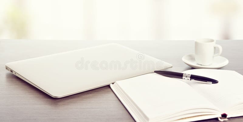 Эстетика рабочего места: ноутбук на белом столе